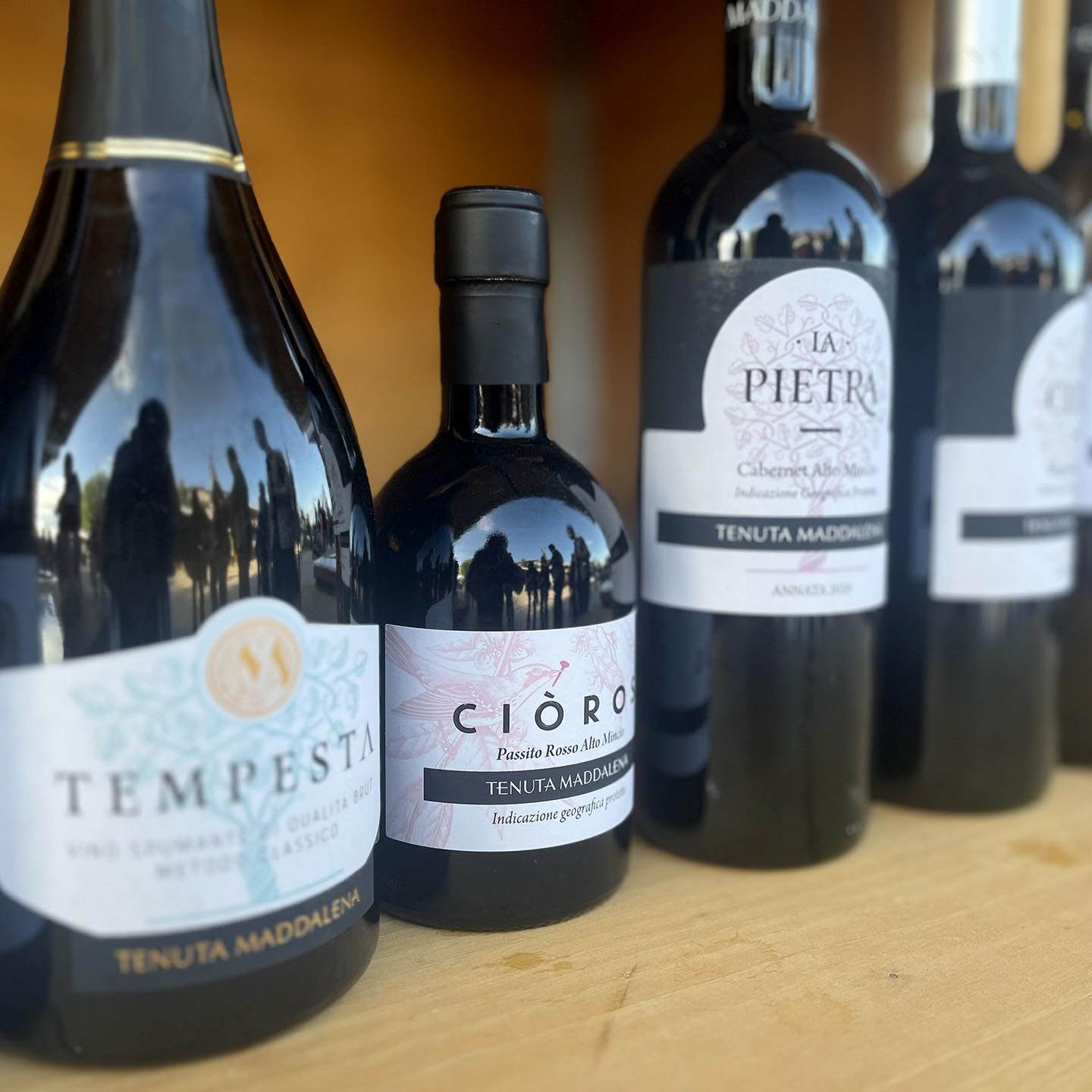 La forza di Tenuta Maddalena è una gamma compatta ma piena di personalità: dallo spumante Metodo Classico Tempesta ai rossi Piume Rosse e La Pietra.