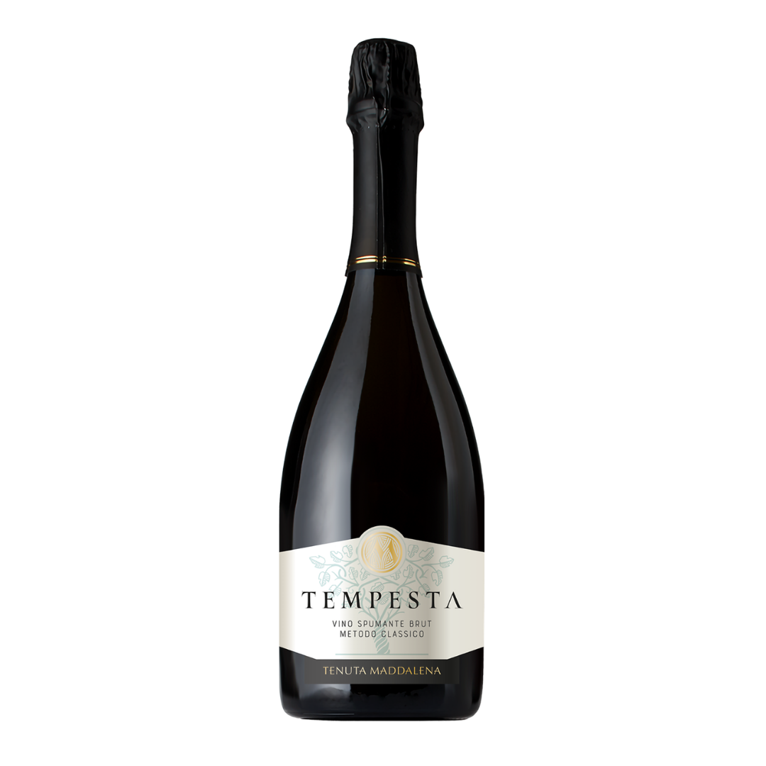Tempesta è il Metodo Classico di Tenuta Maddalena: 100% Chardonnay dalle colline moreniche di Volta Mantovana, raccolto in anticipo per preservare freschezza e acidità.